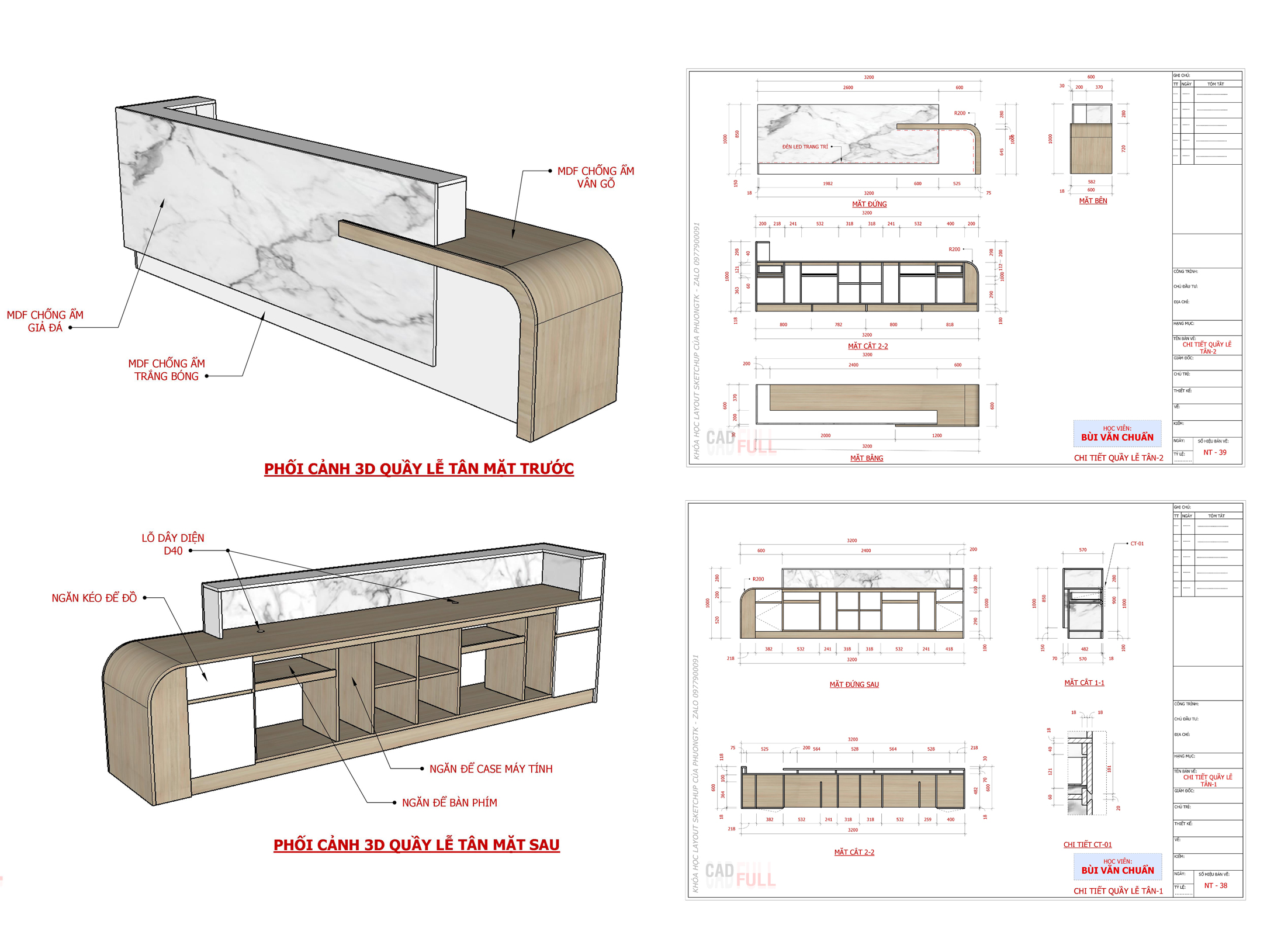 - Gồm File 3D model, Layout Sketchup Chi tiết